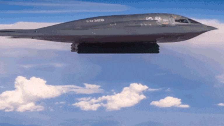 ▲美軍B-2隱身轟炸機(jī)試投GBU-57“巨型鉆地彈”(MOP)并命中目標(biāo)動態(tài)圖。